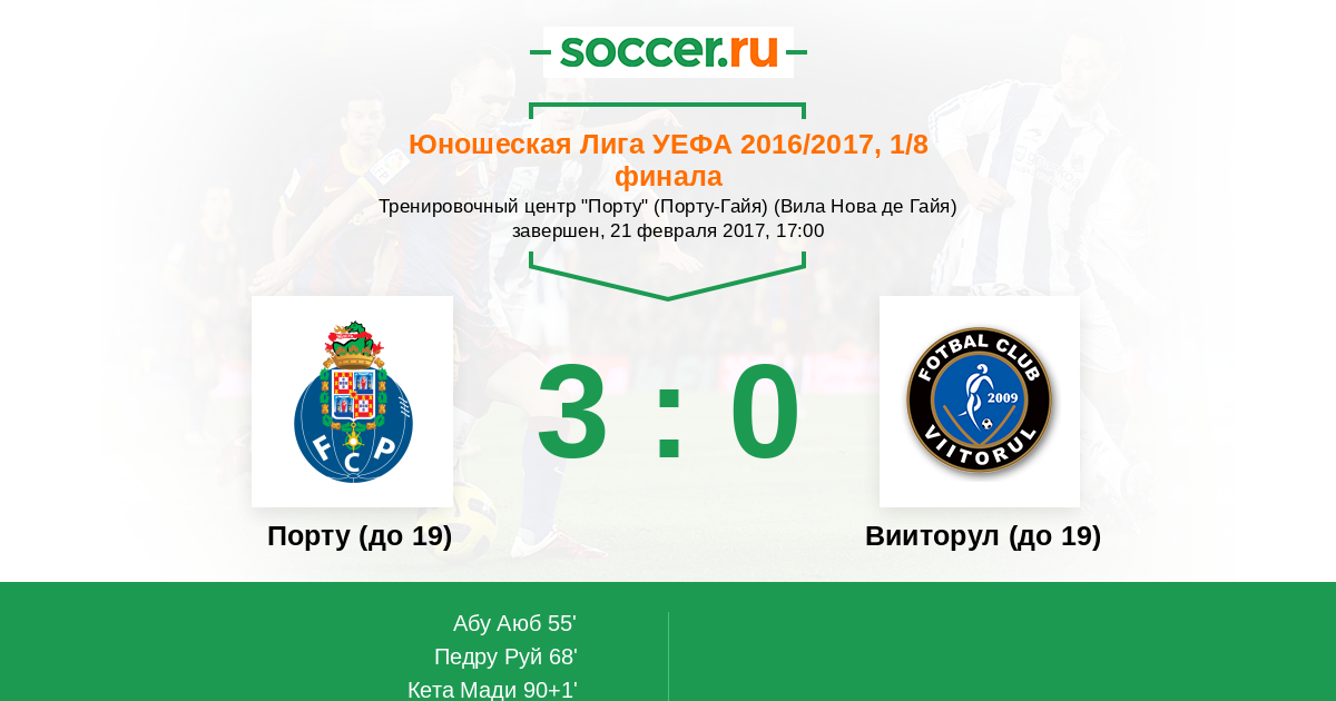 Протокол матча Порту (до 19) против Вииторул (до 19)