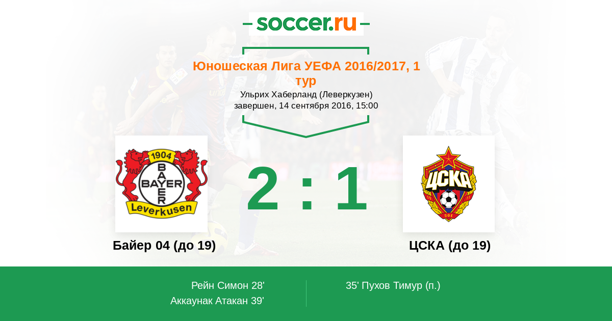Протокол матча Байер 04 (до 19) против ЦСКА (до 19)