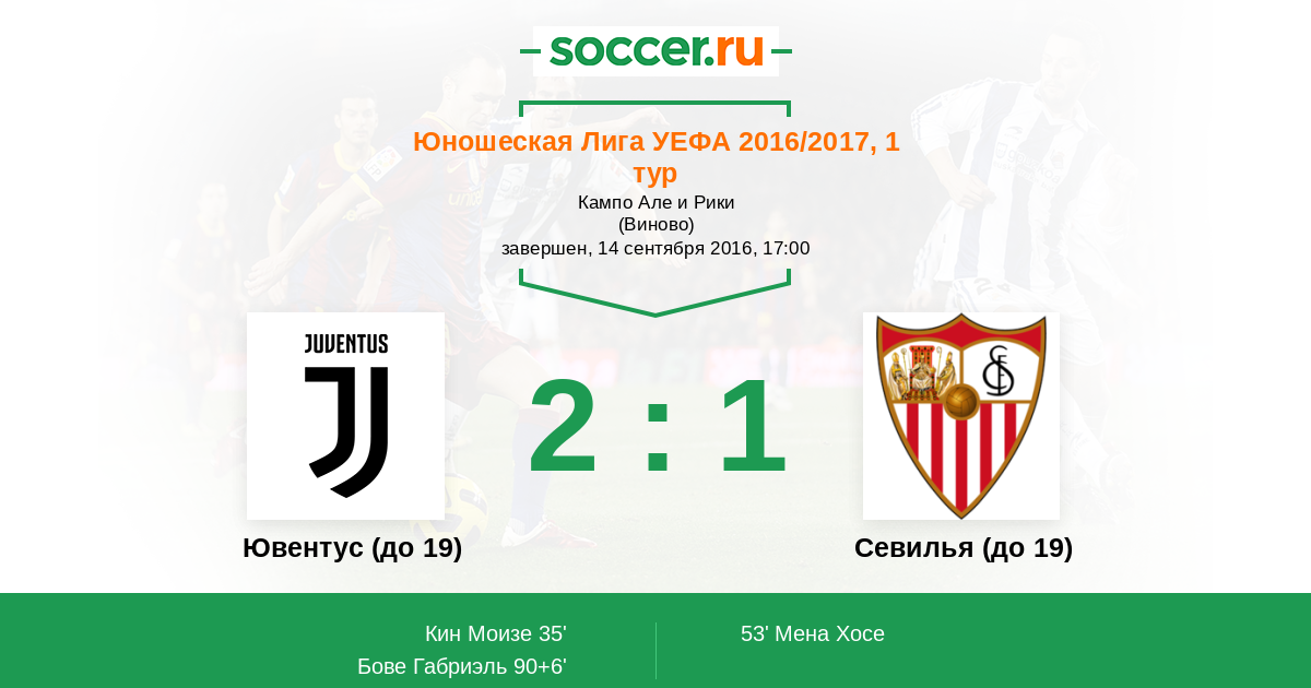 Протокол матча Ювентус (до 19) против Севилья (до 19)