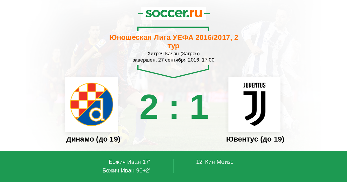 Протокол матча Динамо (до 19) против Ювентус (до 19)