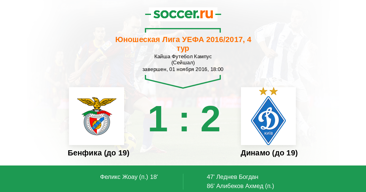 Протокол матча Бенфика (до 19) против Динамо (до 19)