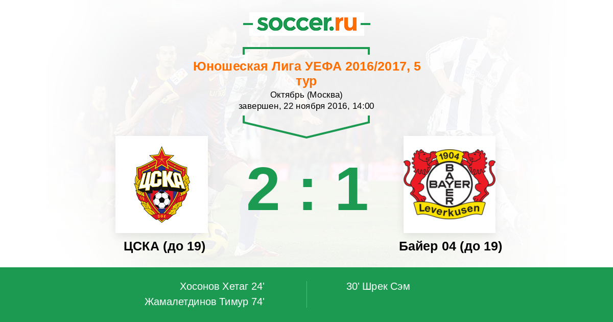 Протокол матча ЦСКА (до 19) против Байер 04 (до 19)