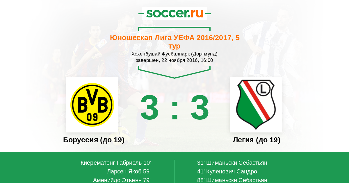 Протокол матча Боруссия (до 19) против Легия (до 19)