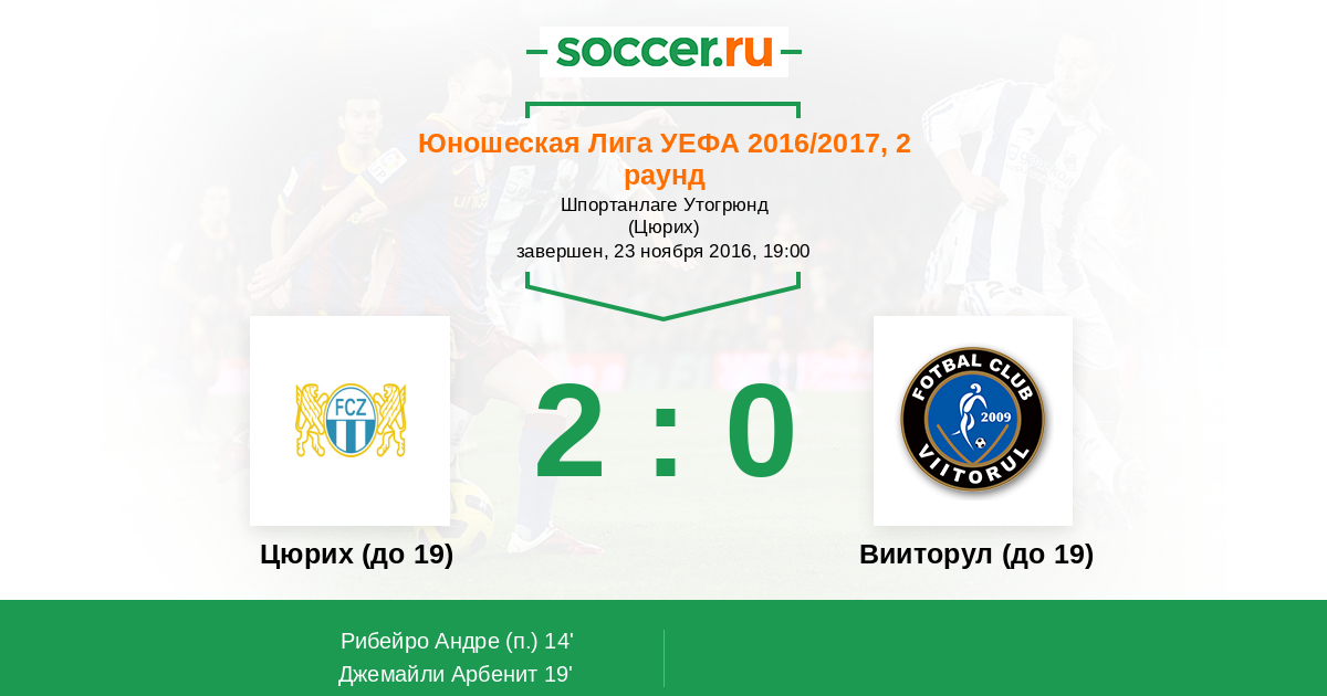 Протокол матча Цюрих (до 19) против Вииторул (до 19)