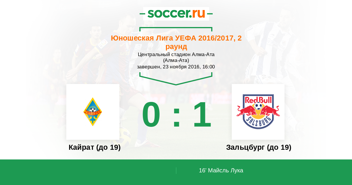 Протокол матча Кайрат (до 19) против Зальцбург (до 19)