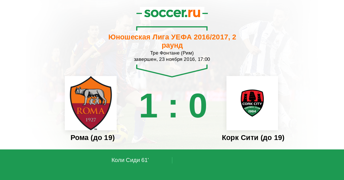 Протокол матча Рома (до 19) против Корк Сити (до 19)