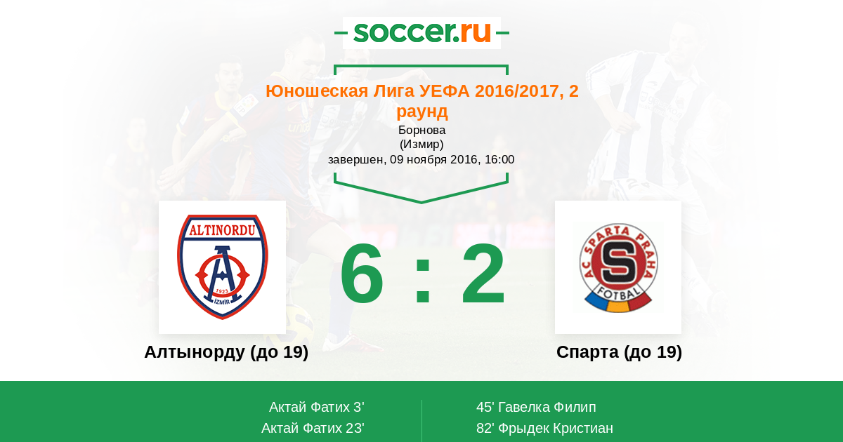 Протокол матча Алтынорду (до 19) против Спарта (до 19)