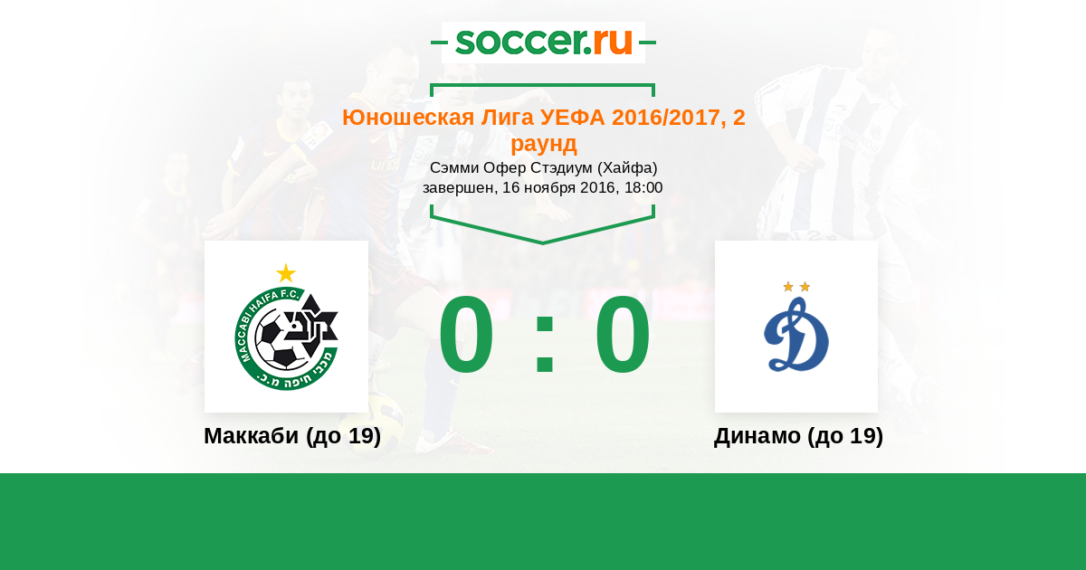 Протокол матча Маккаби (до 19) против Динамо (до 19)