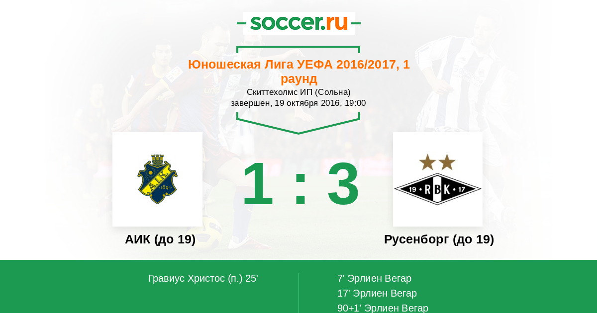 Протокол матча АИК (до 19) против Русенборг (до 19)