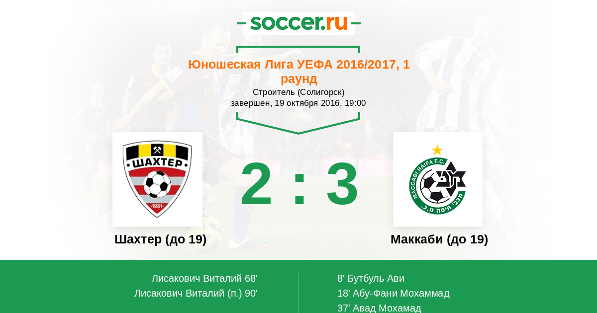 Протокол матча Шахтер (до 19) против Маккаби (до 19)