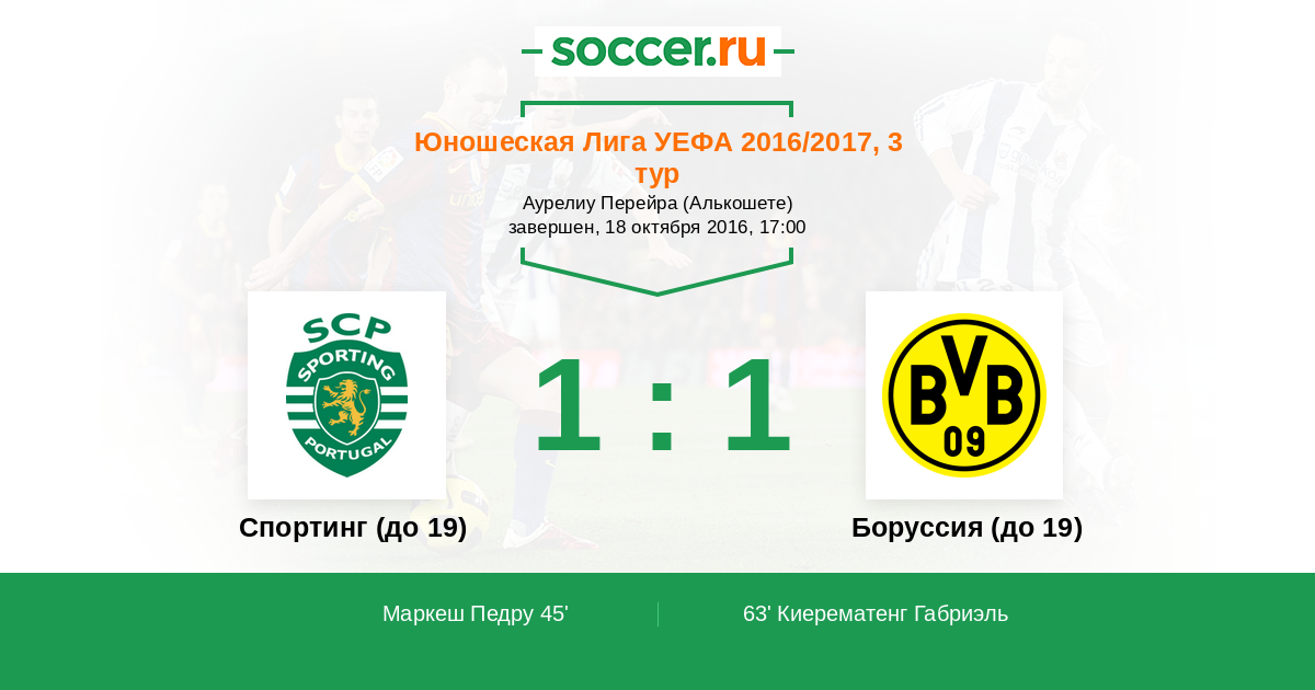 Протокол матча Спортинг (до 19) против Боруссия (до 19)