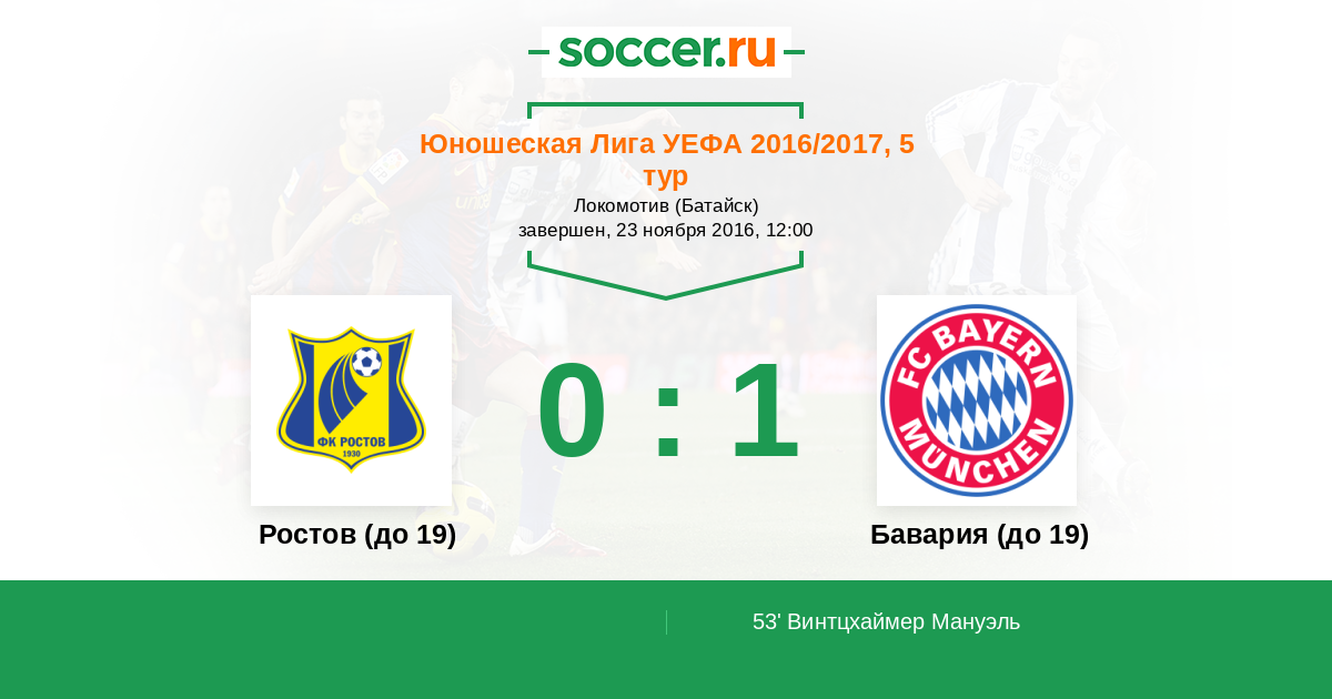 Протокол матча Ростов (до 19) против Бавария (до 19)