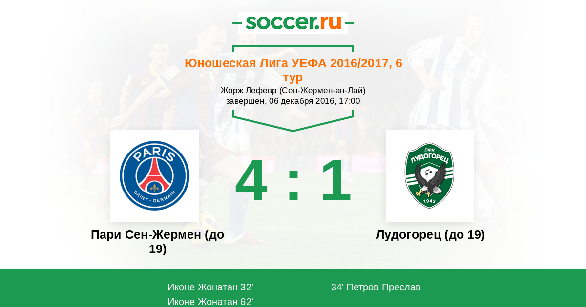 Протокол матча Пари Сен-Жермен (до 19) против Лудогорец (до 19)