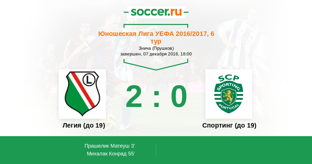 Протокол матча Легия (до 19) против Спортинг (до 19)