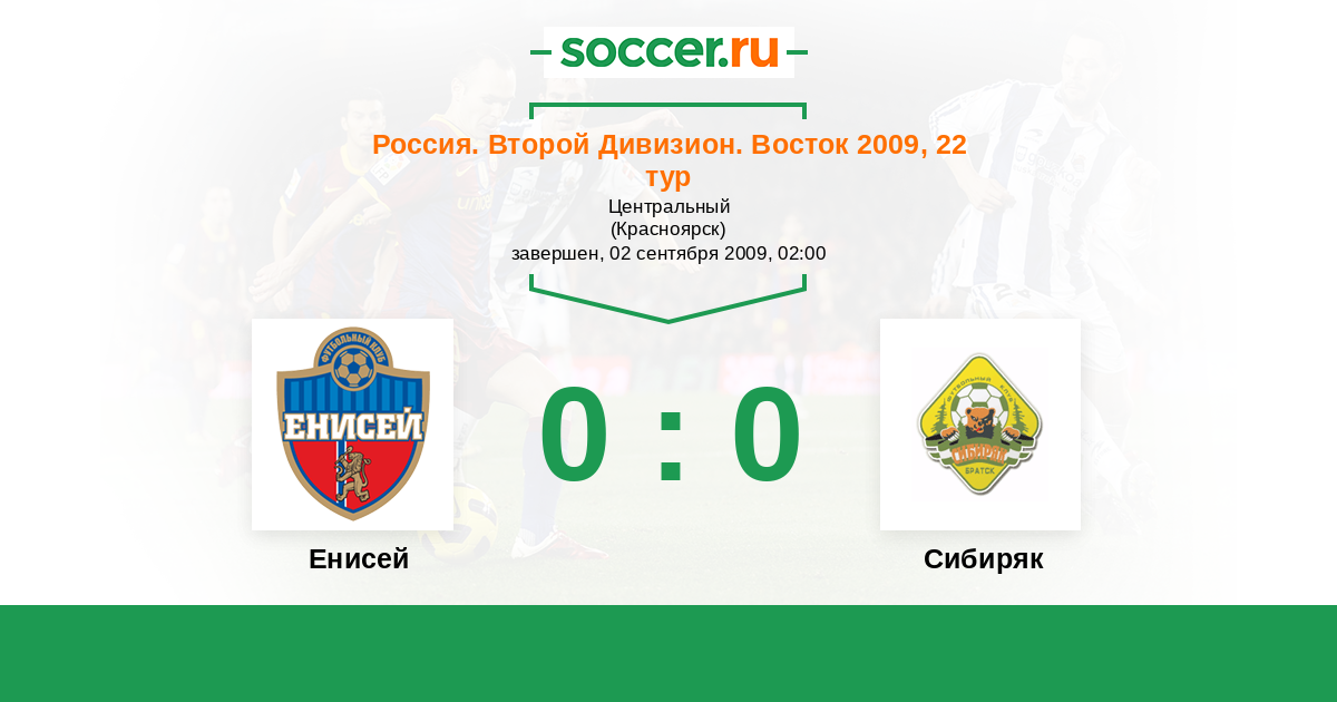 Россия. 2-й дивизион. Восток 08.08.2009 Сибиряк Логотип футбольный клуб Сибиряк (Братск) 0:1 Логотип футбольный клуб Енисей (Красноярск) Енисей