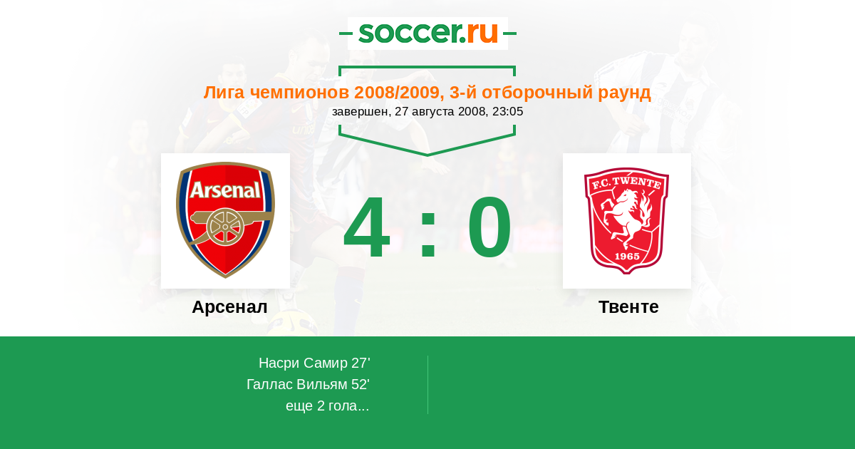 Протокол матча Арсенал против Твенте