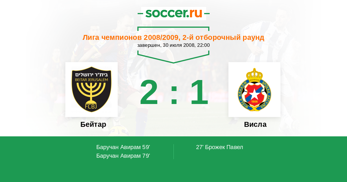 Протокол матча Бейтар против Висла