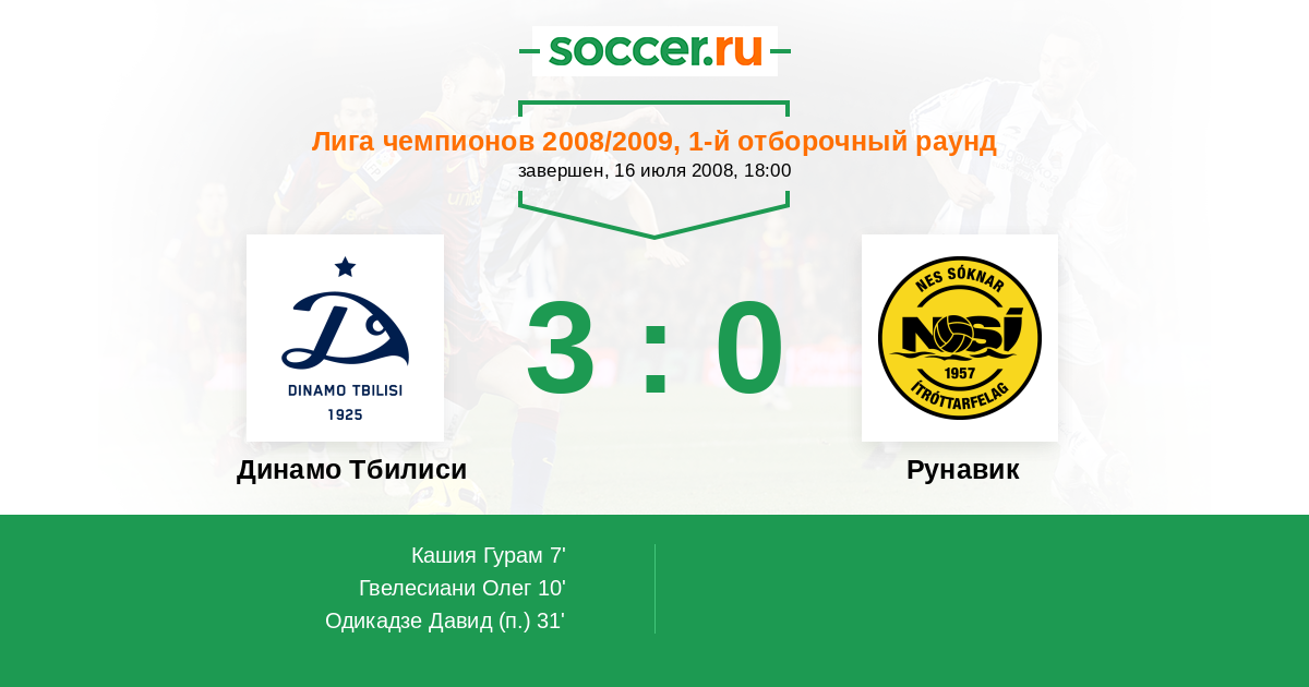 Протокол матча Динамо Тбилиси против Рунавик