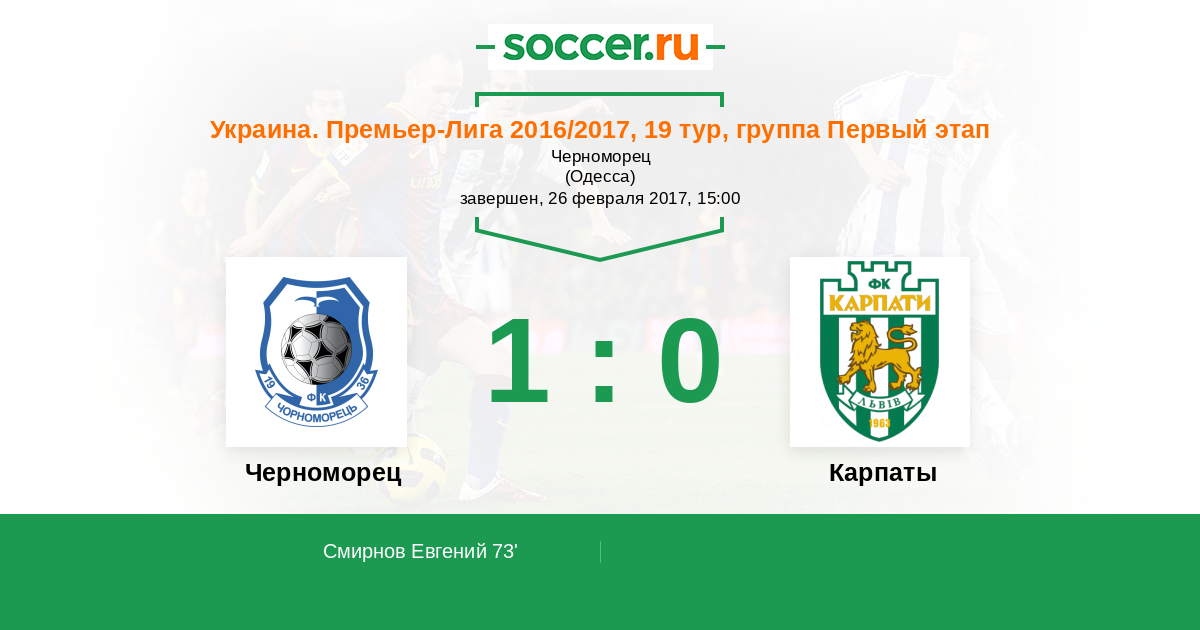 Протокол матча Черноморец против Карпаты