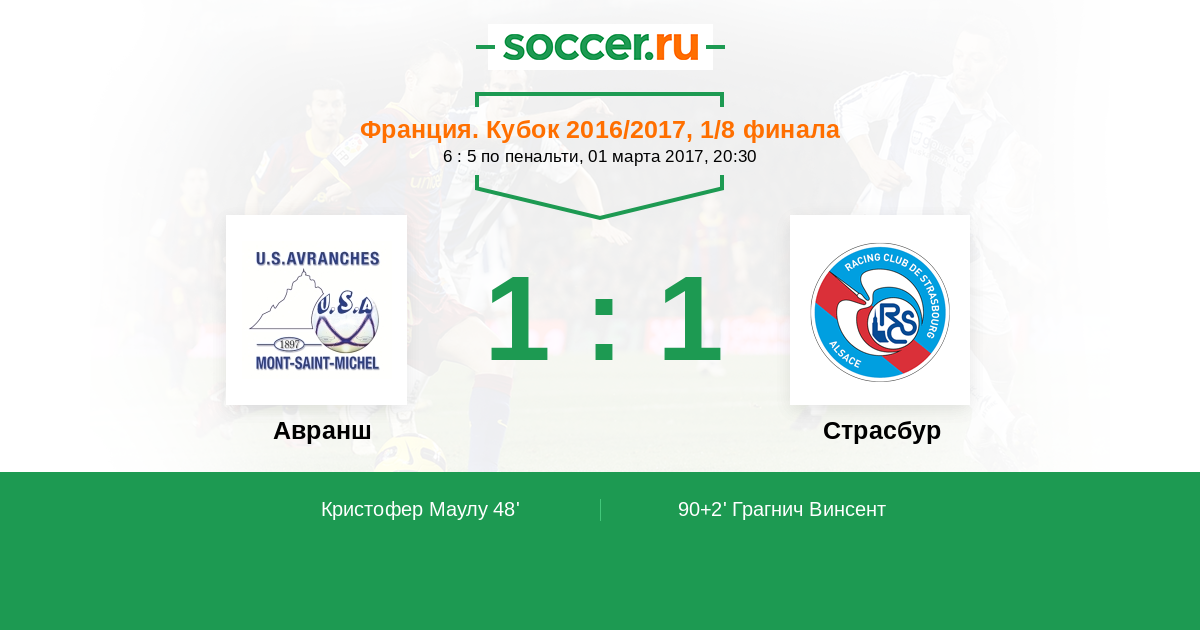Протокол матча Авранш против Страсбур