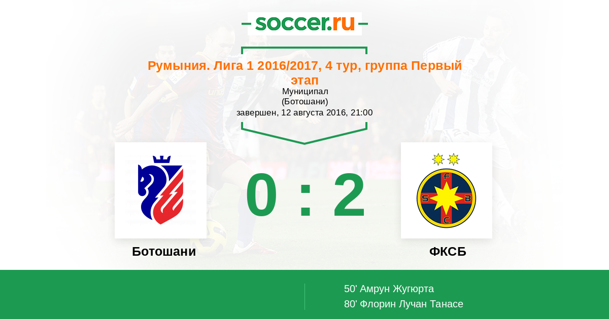 Протокол матча Ботошани против Стяуа