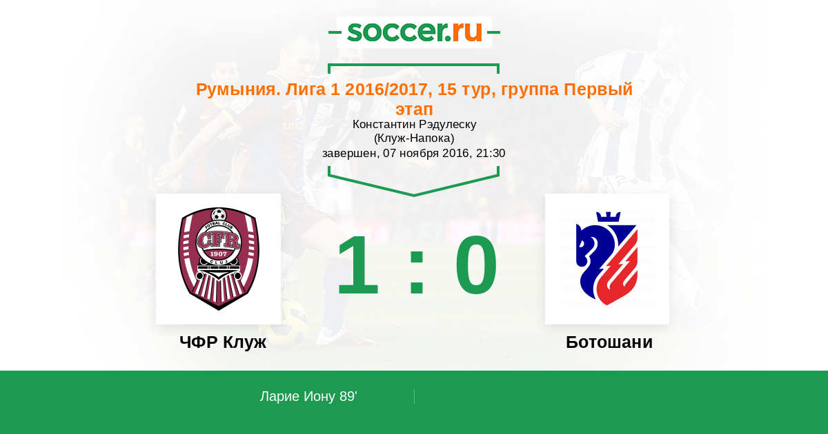 89' (1:0) Ларие Иону (6)