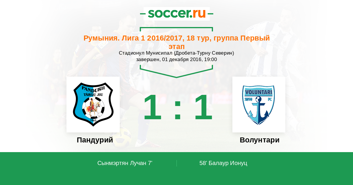 Протокол матча Пандурий против Волунтари