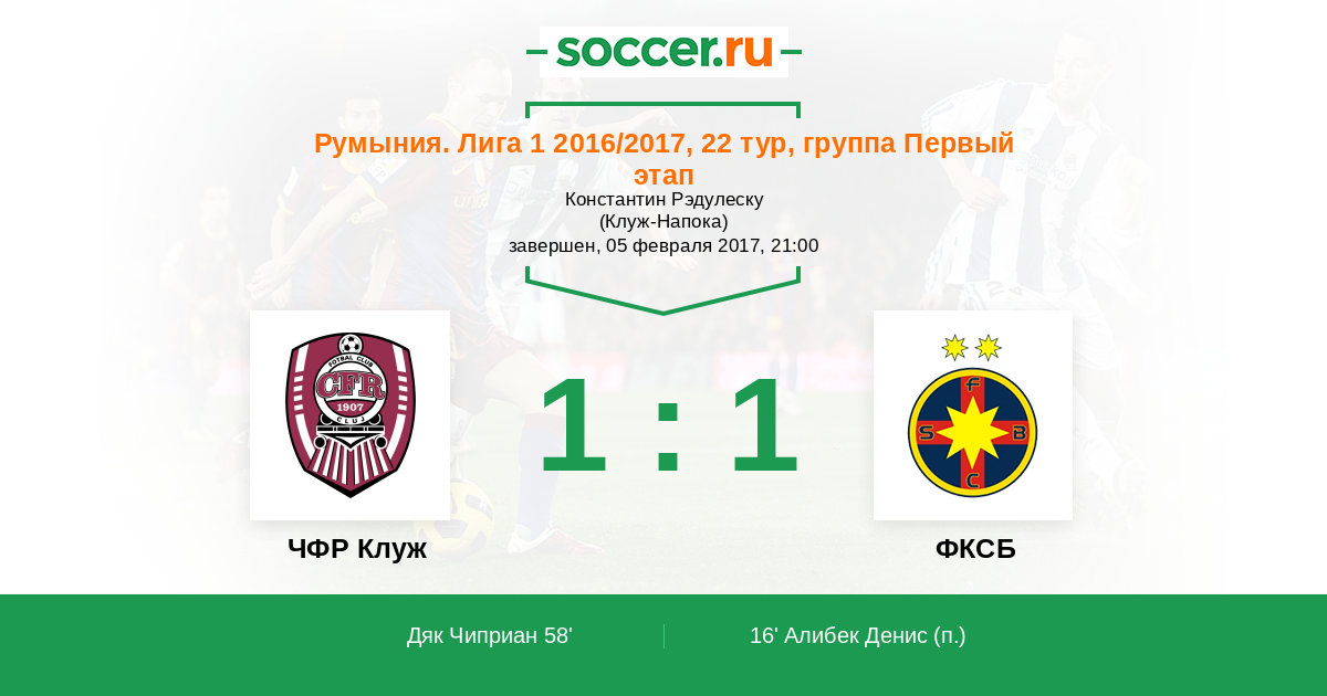 Протокол матча ЧФР Клуж против Стяуа