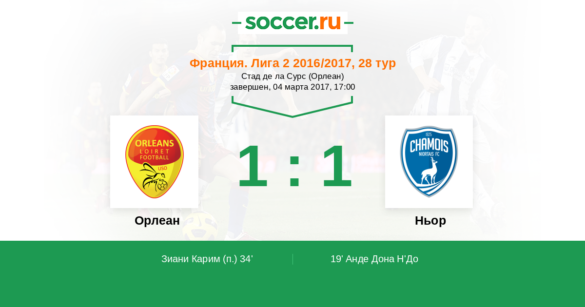 Протокол матча Орлеан против Ньор