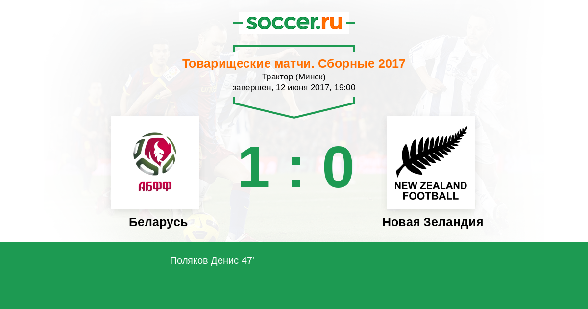 Протокол матча Беларусь против Новая Зеландия