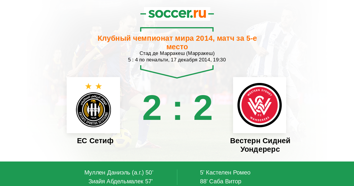 Протокол матча ЕС Сетиф против Вестерн Сидней Уондерерс