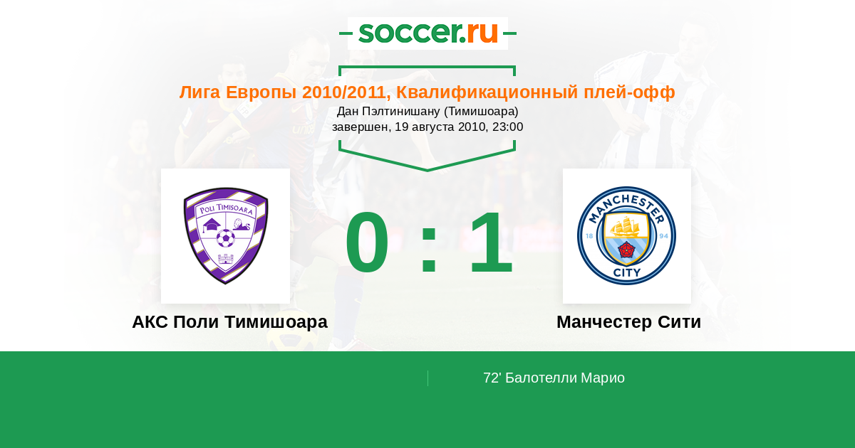 Протокол матча АКС Поли Тимишоара против Манчестер Сити