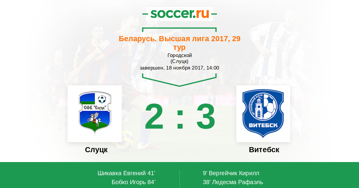 Протокол матча Слуцк против Витебск