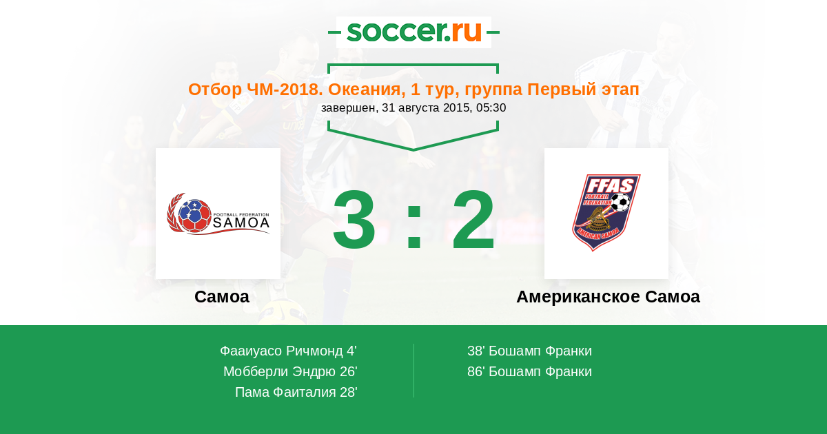 Протокол матча Самоа против Американское Самоа