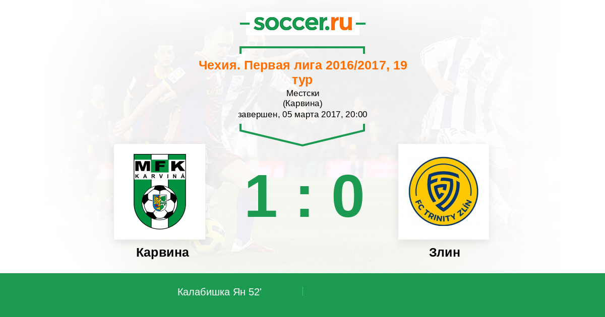 Протокол матча Карвина против Злин