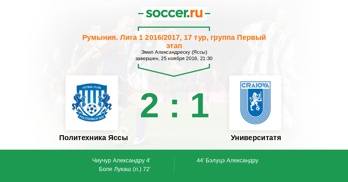 Протокол матча Политехника Яссы против Университатя Крайова