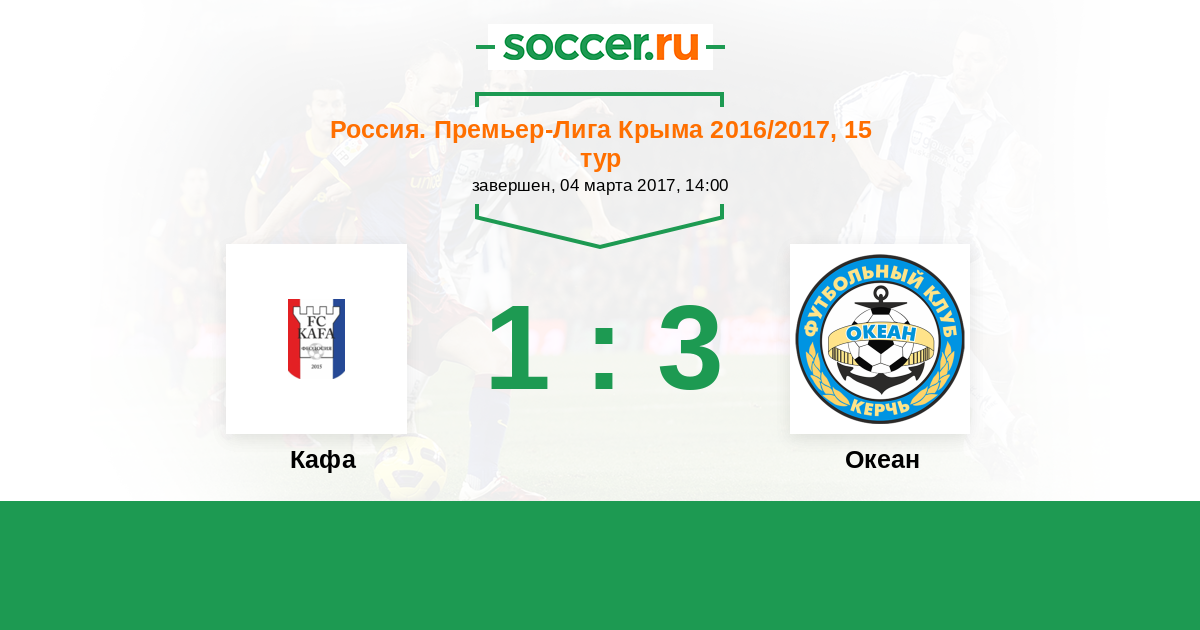 Россия. Премьер-Лига Крыма 30.04.2017 Океан Логотип футбольный клуб Океан (Керчь) 1:0 Логотип футбольный клуб Кафа (Феодосия) Кафа