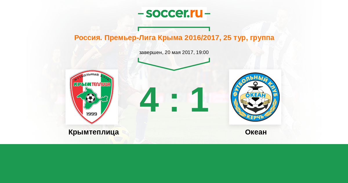 Россия. Премьер-Лига Крыма 11.09.2016 Океан Логотип футбольный клуб Океан (Керчь) 0:0 Логотип футбольный клуб Крымтеплица (Молодежное) Крымтеплица