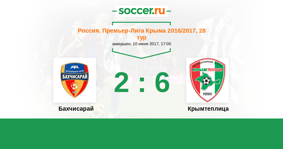 Россия. Премьер-Лига Крыма 10.06.2017 Бахчисарай Логотип футбольный клуб Бахчисарай 2:6 Логотип футбольный клуб Крымтеплица (Молодежное) Крымтеплица