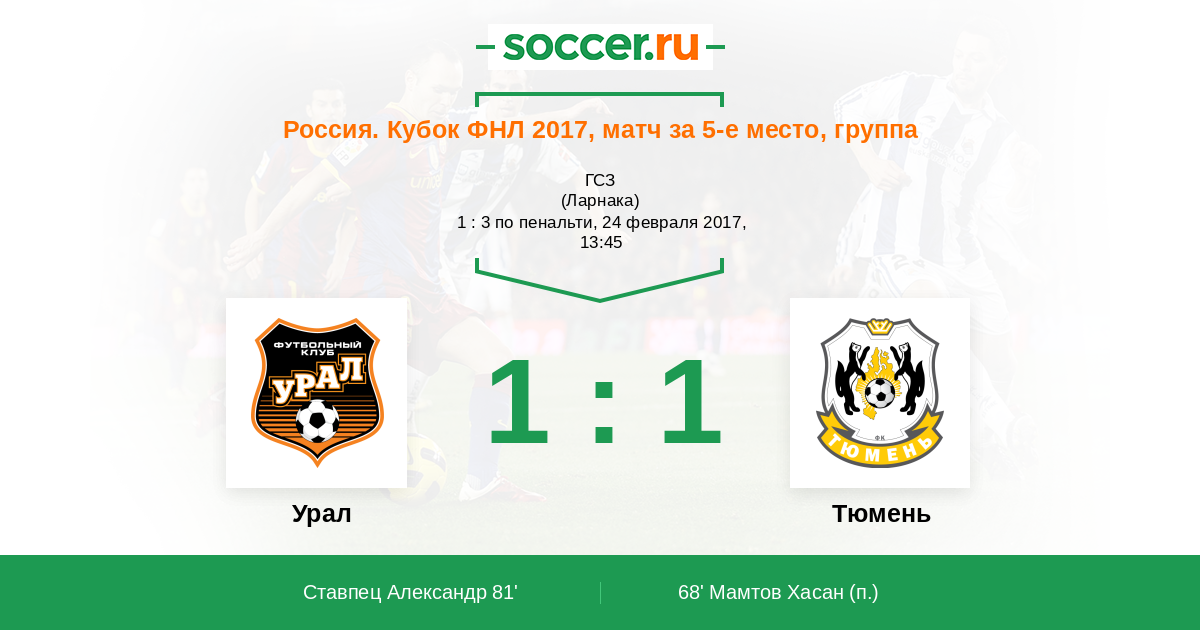 Протокол матча Урал против Тюмень