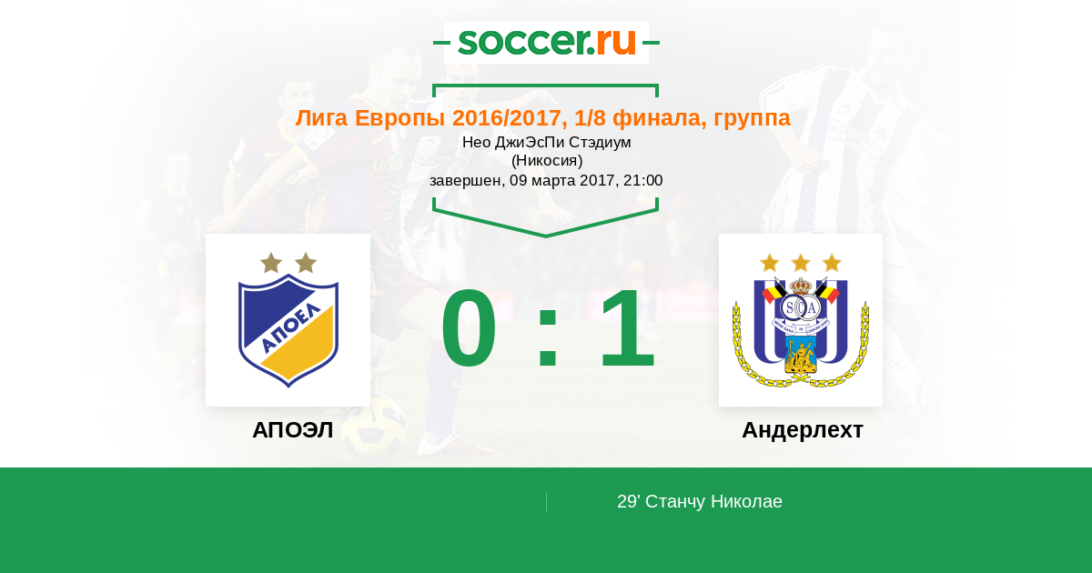 Протокол матча АПОЭЛ против Андерлехт