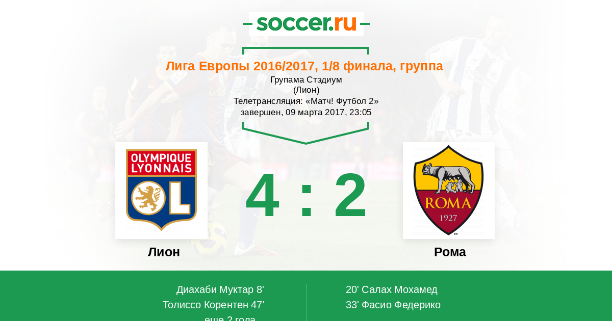 Протокол матча Лион против Рома