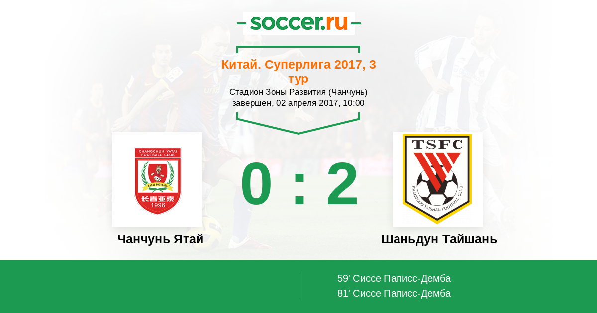 Протокол матча Чанчунь Ятай против Шаньдун Тайшань
