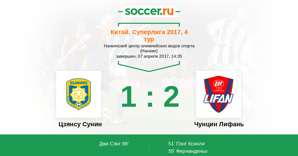 Протокол матча Цзянсу Сунин против Чунцин Лифань
