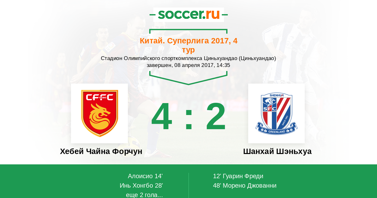 Протокол матча Хебей Чайна Форчун против Шанхай Шэньхуа