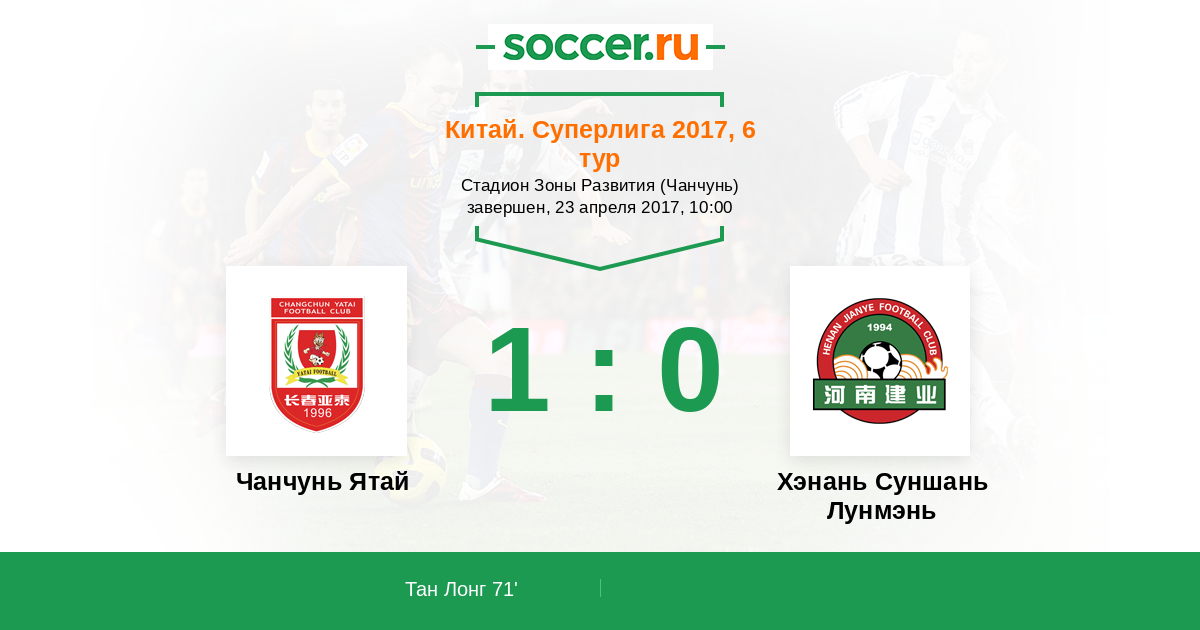 Протокол матча Чанчунь Ятай против Хэнань Суншань Лунмэнь