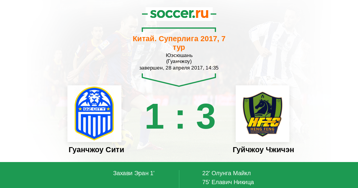 Протокол матча Гуанчжоу Сити против Гуйчжоу Чжичэн