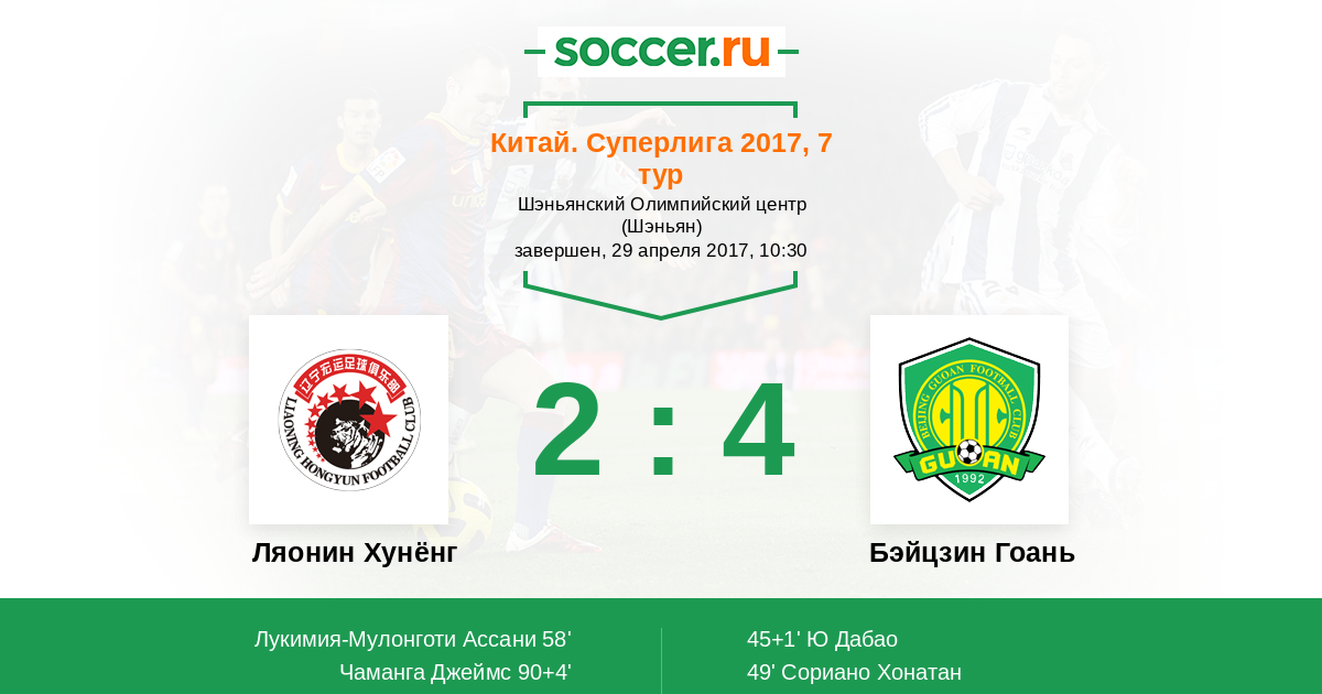 Протокол матча Ляонин Хунёнг против Бэйцзин Гоань