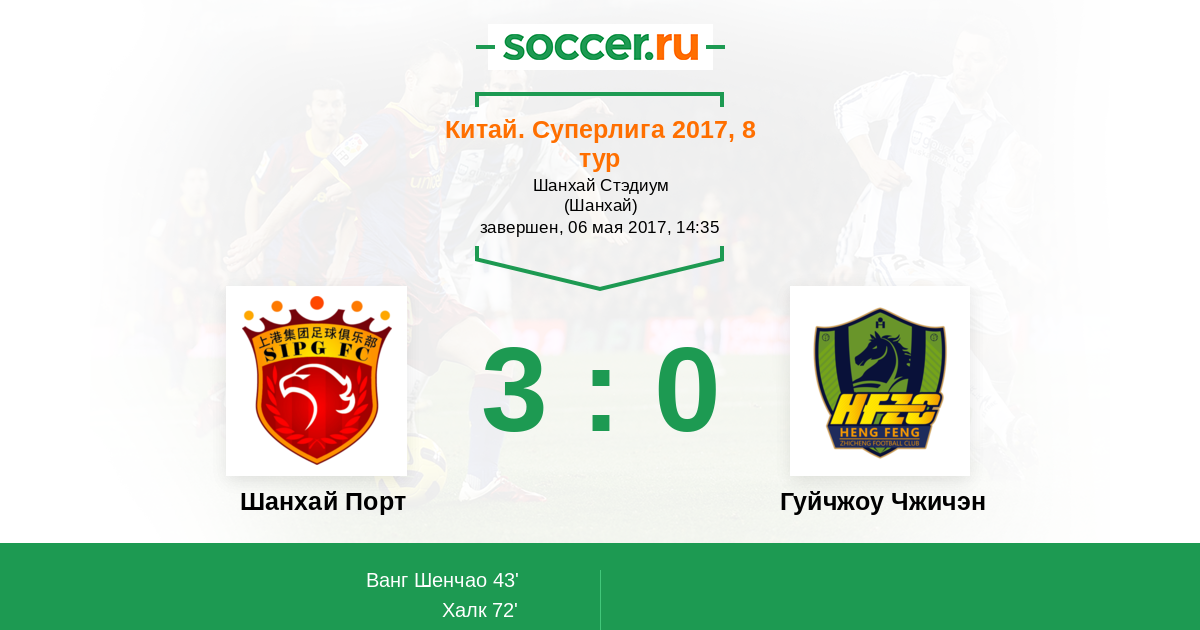 Протокол матча Шанхай Порт против Гуйчжоу Чжичэн