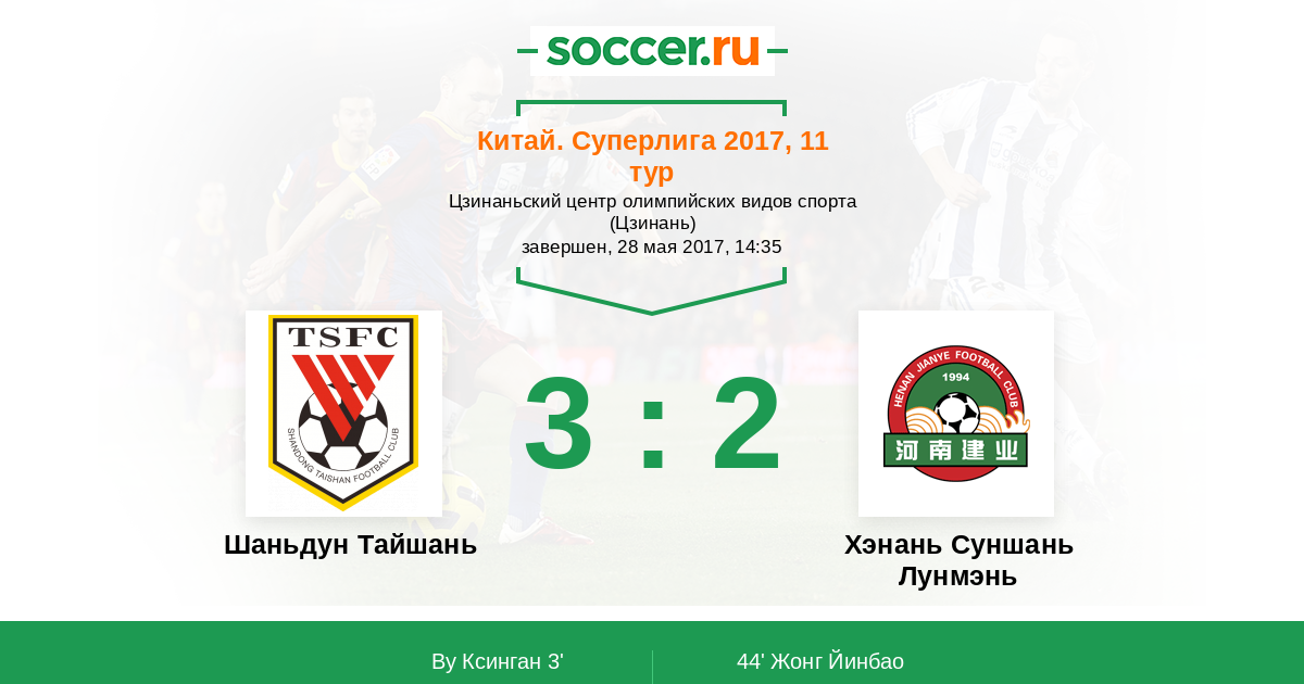 Протокол матча Шаньдун Тайшань против Хэнань Суншань Лунмэнь